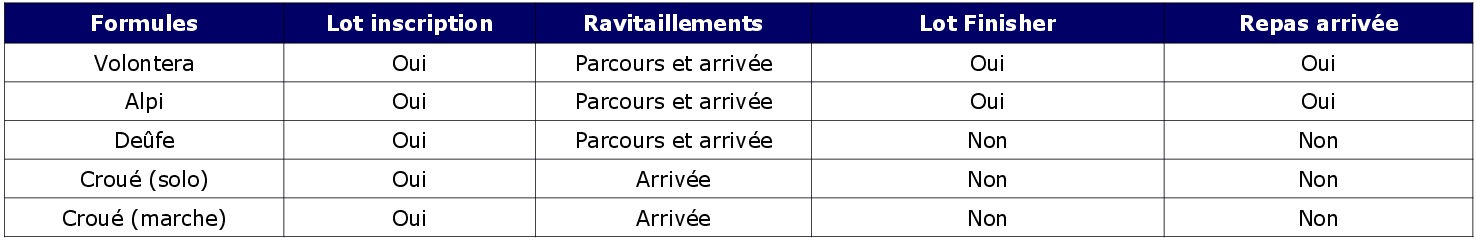 Ce trail se déroulant en semi-autonomie , le nombre de ravitaillements est limité au strict minimum et sera fonction des conditions climatiques.